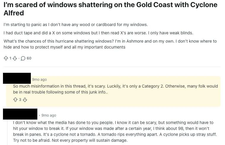 Demonstrate, using the 2025 Severe Tropical Cyclone Alfred as an example, how social listening can be applied in an emergency management situation.